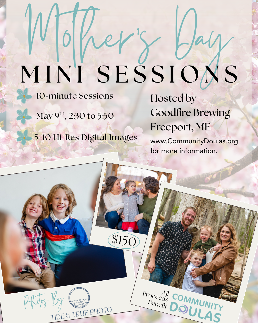 Join Community Doulas and Tide and True Photography for Mother’s Day Mini Sessions for expecting parents or photos with your littles, with all proceeds going directly to Community Doulas.